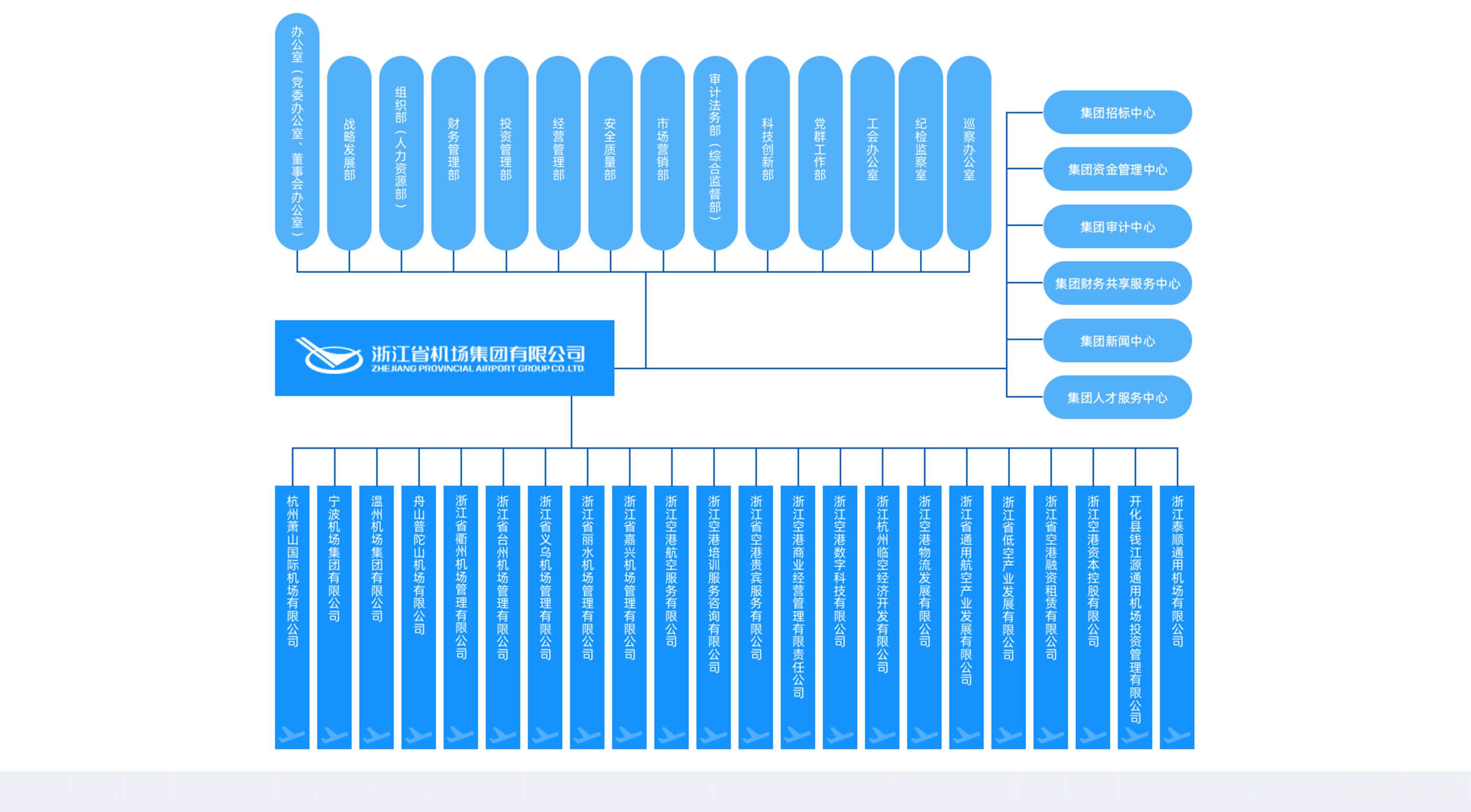 浙江省機場集團有限公司是省級綜合交通投資、建設、運營和管理平臺,根據省委、省政府關于整合全省機場資源、搭建航空大平臺的決策部署,2017年11月17日揭牌成立,時任浙江省委書記車俊、省長袁家軍共同揭牌。集團注冊資本金100億元,下轄杭州機場、寧波機場、溫州機場、舟山機場,托管衢州機場、臺州機場、義烏機場、建德千島湖通用機場等。